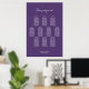 Help your guests find their table with this modern purple seating chart. It is suitable for a wedding with 10 tables and 100 guests.