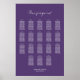 Help your guests find their table with this modern purple seating chart. It is suitable for a wedding with 18 tables and 180 guests.