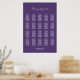 Help your guests find their table with this modern purple seating chart. It is suitable for a wedding with 20 tables and 200 guests.