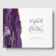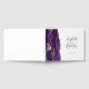 This elegant wedding guest book features a purple watercolor agate design trimmed with faux gold glitter. Easily customise the charcoal grey text on a white background, with the names of the bride and groom in whimsical handwriting calligraphy over a large, pale purple ampersand. Add additional text of your choice to the front and spine.
