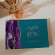 This elegant wedding guest book features a purple watercolor agate design trimmed with faux gold glitter. Easily customise the gold-coloured text on a teal blue background, with the names of the bride and groom in whimsical handwriting calligraphy over a large ampersand. Add additional text of your choice to the front and spine.