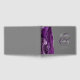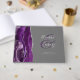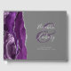 This elegant wedding guest book features a purple watercolor agate design trimmed with faux silver glitter. Easily customise the silver grey text on a medium grey background, with the names of the couple in whimsical handwriting calligraphy over a large purple ampersand. Add additional text of your choice to the front and spine.
