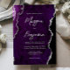 This elegant wedding invitation features a background image of purple watercolor agate trimmed with faux silver glitter. The customisable text combines silver-grey modern handwriting, copperplate and italic fonts. The reverse side features a coordinating purple and silver agate design.