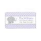 Elephant address labels feature an adorable little newborn baby elephant calf with heart shaped splashes and a polka dot and diagonal stripes patterned background. Modern lavender purple, grey and white colour scheme. Personalise the design template with your return address. Use "Customise it" to edit the text size or colour.