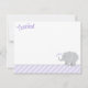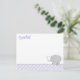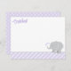 Modern Purple and Grey Elephant Girl Baby Shower Note Card