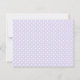 Sweet and whimsical baby shower thank you notes feature "Thanks!" text and an adorable newborn baby elephant calf with heart shaped splashes, with space for your handwritten message. The design includes a border pattern of diagonal stripes, polka dots on the back, and a baby girl colour scheme of light lavender purple, grey, and white.
