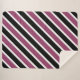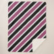 Modern sherpa blanket for girls bedroom features diagonal stripe pattern in purple, black, and white.