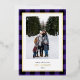 Send holiday greetings with these deluxe photo Christmas cards, featuring your favourite vertical photo set against a hand-drawn purple and black buffalo plaid pattern framed by a border real gold foil. Customise your holiday message with a modern lettering style in the editable text area, and add your family name in real gold foil!!! The back of the card provides space for an additional photo and a personalised holiday message