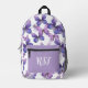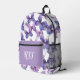 This modern purple butterflies pattern backpack features coordinating patterns and monogrammed initials. It's a traditional patterned design with a pretty and girly update that would be cute for a girl to carry her school or sports gear. Grab one for back to school time, or as a feminine addition for her to use for travel, camping, hiking, or anywhere you'd need to carry supplies. Great for kids, tweens, a teen girl, or adults.