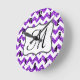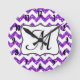 Modern Purple Chevron Monogram Initial Wall Clock