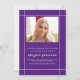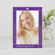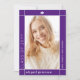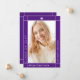 Modern purple Class of 2025 graduation photo Announcement. The vibrant purple background is complemented by a sleek white border that elegantly frames your graduate's photo, making it the focal point of the announcement. The graduate's name and other important information are thoughtfully positioned outside the frame, ensuring they stand out. Flip the announcement over, and you will discover another photo along with all the essential details of the graduation, creating a memorable keepsake for this special milestone in your life.