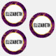Personalised waterproof labels with a beautiful abstract pattern featuring a marble design. Rich purple colours blending together combined with faux-gold swirling ribbons of colour mixing and mingling throughout the design. A circle with a faux gold-foil border layered over top with your personalised text inside.