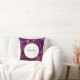 Personalised pillow with a beautiful abstract pattern featuring a marble design. Rich purple colours blending together combined with faux-gold swirling ribbons of colour mixing and mingling throughout the design. A circle with a faux gold-foil border layered over top with your personalised text inside.