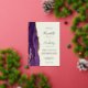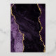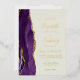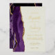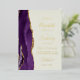 The left-hand edge of this elegant modern wedding invitation features a purple watercolor agate border trimmed with faux gold glitter. The customisable text combines handwriting, copperplate and italic fonts in real gold foil on an ivory background. The reverse side features a matching purple and gold agate design.