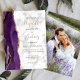 The left-hand edge of this elegant modern wedding invitation features a purple watercolor agate border trimmed with faux gold glitter. The customisable text combines black and gold-coloured handwriting, copperplate and italic fonts on a grey and white marble background. Easily replace the sample image on the back with your own vertical photo.