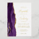 The left-hand edge of this elegant modern wedding invitation features a purple watercolor agate border trimmed with faux gold glitter. The customisable text combines handwriting, copperplate and italic fonts in real gold foil on a white background. The reverse side features a matching purple and gold agate design.