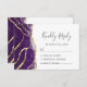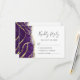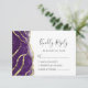 The left-hand edge of this elegant modern wedding RSVP enclosure card features a purple alcohol ink border trimmed with faux gold foil and faux glitter. The title "Kindly Reply" appears in handwriting script, with customizable text below in charcoal gray copperplate font on a white background. The reverse side features a matching purple and gold design.