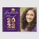 Announce your graduation in style with this elegant custom photo announcement magnetic card. This design has your photo on the right and to the left is a gold and white typography featuring the words "Graduate Class of 2023" with your name and school to personalise accented with a faux gold graduate cap on a purple background. Designed by Susan Coffey.