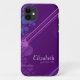 Modern grunge splatters and diagonal stripes design in purple and indigo blue, iPhone Case-mate case with space for custom name / text - or delete if plain is preferred
