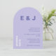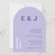 The front of this trendy modern wedding invitation card features lavender purple and white lettering on a light purple background. The back of the card features plain lavender purple. A lovely wedding invitation card that is easy to personalise online before ordering.