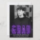 Announce your grad's special achievement with our neon graduation announcements. The modern graduation announcement displays the graduate's vertical photo with "Grad" in purple neon lettering. Personalize the neon graduation announcement by adding the graduate's name, school name, and graduation year. The announcement reverses to display a solid purple background with space for additional photos and/or text. The photo graduation announcement is perfect for both high school and college graduates.