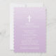 Beautiful First Holy Communion invitation featuring a fancy delicate garland with a white hanging cross set on a chic & popular lavender pale lavender purple ombre background. Flip the invitation over to find a matching ombre back for an extra special touch. Available in our shop in a variety of colours for a girl or boy.