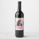 Modern Purple Pink Blossom Script Photo Wedding Wine Label