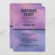 A birthday party invitation with a modern creative background. Pink and purple colours swirling around creating an elegant gradient effect. Stylish dark blue text.