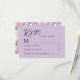 This boho-inspired RSVP card features original watercolours of roses in soft blush pink and romantic purple tones. The delicate floral artwork beautifully complements a purple and pink rose wedding suite while the modern script “RSVP” heading adds a stylish touch. Practical response options and guest count lines make it both functional and beautifully refined for a romantic garden-inspired celebration.