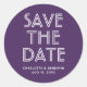 Modern purple wedding save the date sticker/envelope seal. Easily edit online with your wedding details.