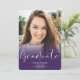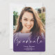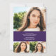 A modern, simple purple script graduate with 4 photos graduation announcement. Add your message at the back.