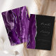 The left-hand edge of this elegant modern wedding invitation features a purple watercolor agate border trimmed with faux silver glitter. The customisable text combines handwriting, copperplate and italic fonts in real silver foil on an off-black background. The reverse side features a matching purple and silver agate design.