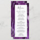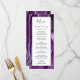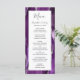 This elegant, modern wedding menu features a watercolor purple agate background trimmed with silver faux glitter. The text appears in elegant charcoal grey handwriting and copperplate fonts on a white rectangle. The agate design is repeated on the reverse.