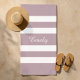 Modern Purple Stripes Name Beach Towel