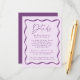 Complete your wedding suite with our Modern Purple Wavy Frame wedding details card. Featuring the same retro design as our invitation collection, this card features a dark purple wavy frame border surrounding your important wedding details such as wedding venue details, hotel accommodations, directions, and wedding website on a light purple background.