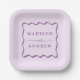 Modern Purple Wavy Frame Wedding Paper Plate