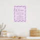 Welcome your guests with modern charm using this Purple Wavy Frame Wedding Welcome Poster. Your names and wedding details appear in purple lettering on a light purple background, framed by a bold wavy border for a stylish focal point. Perfect for spring, lavender, or whimsical weddings, this welcome poster adds a fresh and elegant touch to your décor. Available as a professionally printed poster or as an instant download to print at home.