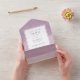 This beautiful and elegant lavender purple wedding invitation features a watercolor-painted ombre background with a white border that includes an RSVP card. Find matching items in the Purple Watercolor Ombre Wedding Collection.