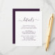 Provide your guests with important details with this elegant modern purple wedding enclosure card featuring a modern script font. Matching items available.