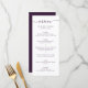 Elegant custom purple wedding menu with a modern script font. Easily personalise online. Matching items available to complement this minimalist purple wedding menu.