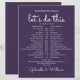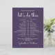 This stylish wedding schedule-timeline can be personalised with your wedding details set chic white lettering on a purple background. Designed by Thisisnotme©