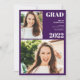 Modern simple minimalist 3 photos graduation party. Add your photos, with a simple bold script, purple and white, vertical layout.