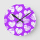 Modern Purple White Doodled Heart Valentine's Day Round Clock