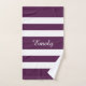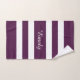 Modern Purple White Striped Pattern Name Bath Towel Set.
