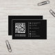 Modern and simple QR Code custom logo and custom social media icons business card template. Template in a modern minimalist style on a black background with simple text font style in white colour with your Website QR Code. The versatile template can easily be updated with your company logo, name, title, address, phone, email and social media usernames (for Instagram and Facebook). The icons can easily be replaced with the one you want or an added extra to make a truly bespoke professional design for your own business! When you personalise the template choose from the template layer the icons (twitter, pinterest, tiktok, snapchat, linkedin, youtube,) you want and make visible on your business card by clicking on them and remove or make invisible the icons you don't need on your business card.