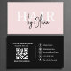 Stylish blush pink and black design with bold modern typography, featuring a scannable QR code on the back for instant booking or social media. Perfect for hair stylists and beauty professionals who want a trendy, professional, and eye-catching business card.