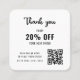 A minimalist custom business logo black and white QR code discount card for a professional business to use as a promotional tool to develop customer loyalty. Replace the image with a square photo of your logo. You can change the font, font colour, font size, letter spacing, background colour, colour of the Thank you graphic and reposition the text using the Design Tool. You can also change the social media icons so they are relevant to your business. The simple modern elegant design is yours to customise as you wish.