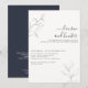 Modern QR Code Navy Blue Script Botanical Wedding Invitation