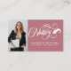 Modern, elegant typography photo Notary business card. Design features your photo, elegant typography script ''Notary'' in white handwritten lettering, your name and title on the rose gold background. Personalise further with your QR code, contact details and social media on the back.