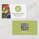 This design features a QR code website business card, with a photo and logo, a modern minimalist, simple minimal, chic professional, with social media, a trendy unique, add your logo here in the template, and a digital contact, with avocado.